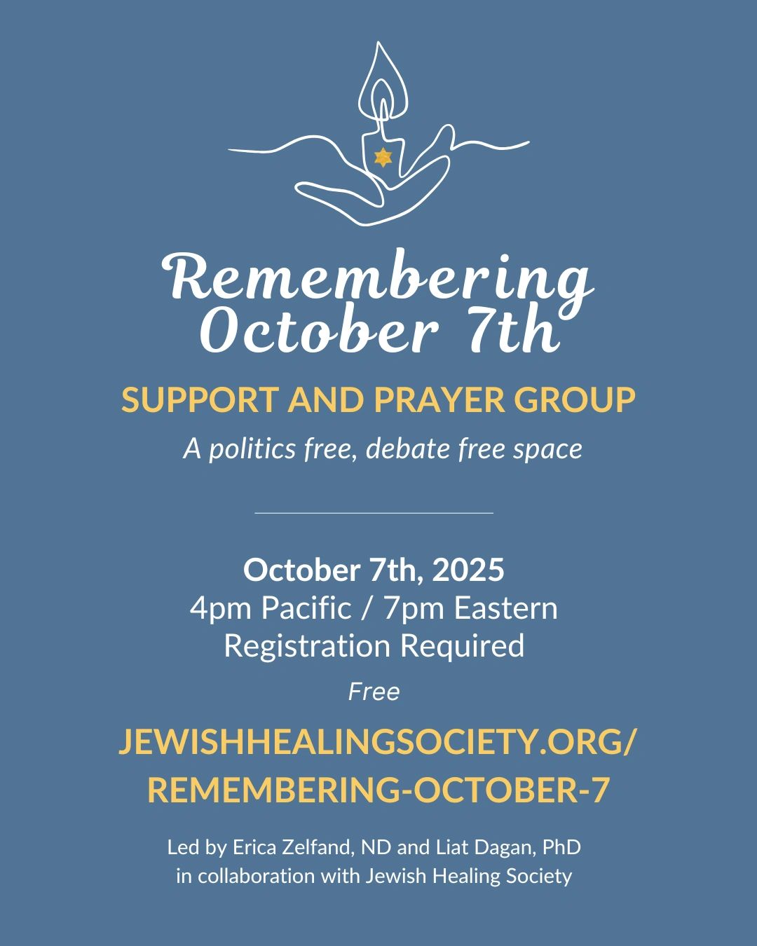Join us for a solemn Zoom gathering to commemorate the two-year anniversary of the October 7th attacks by Hamas in Israel, a day that brought immeasurable tragedy and loss.